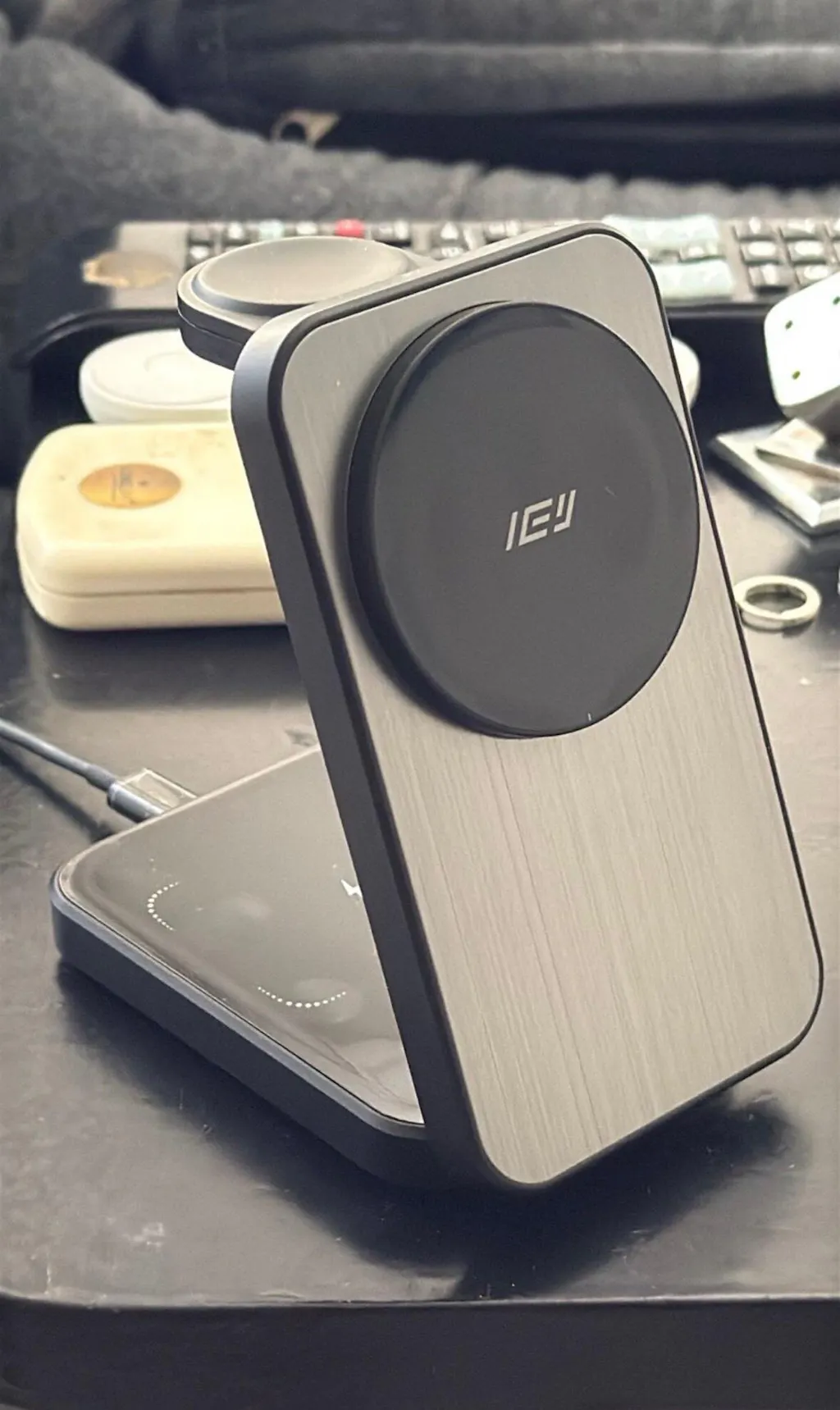 - Mantené tus dispositivos cargados y organizados con el Cargador Inalámbrico Plegable 3 en 1 de IEY®.